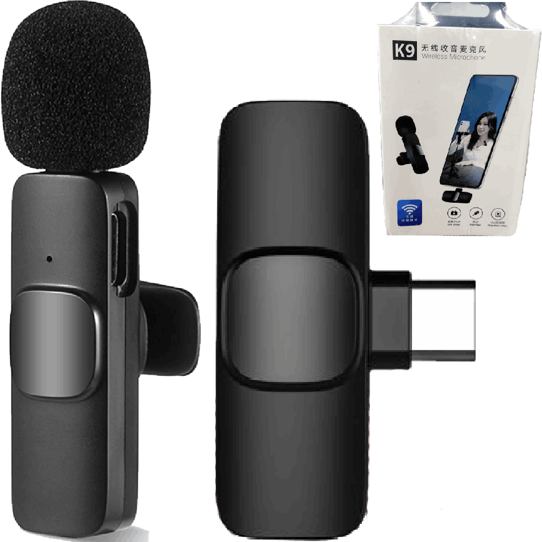 میکروفن یقه ای بی سیم مدل K9 تایپ سیمیکروفون یقه ای بیسیم گوشی موبایل K9 Dual Type-C بسته 2 عددی دارای تبدیل لایتنینگ مناسب گوشی آیفون سامسونگ(با برنامه